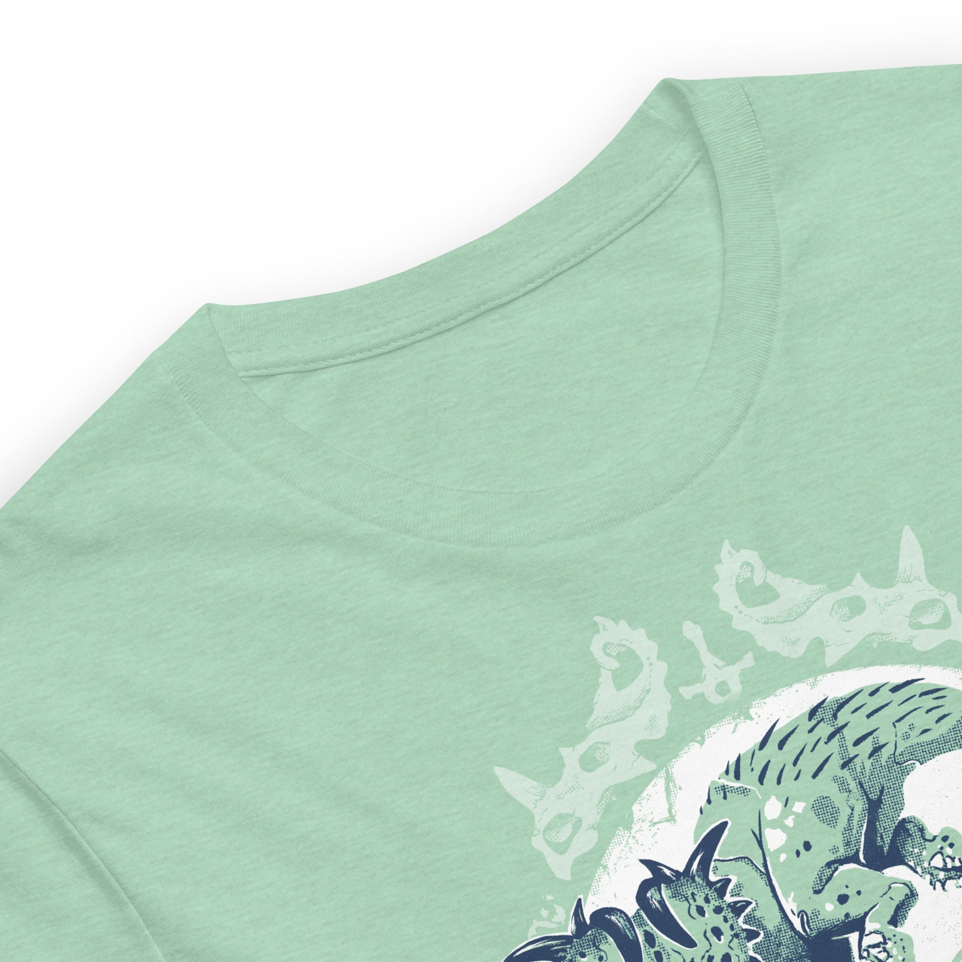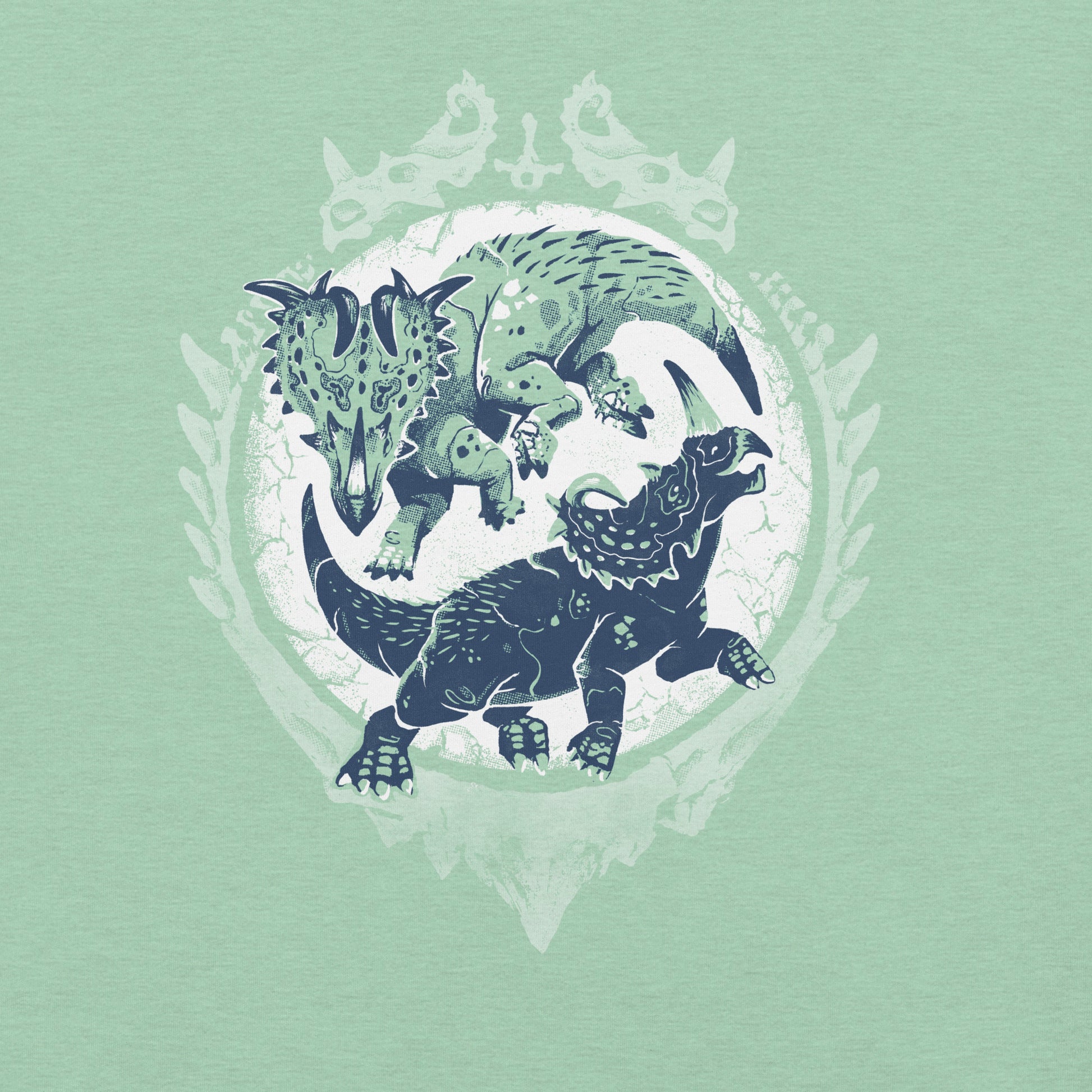Prepare for battle with the limited edition Bone Shield graphic tee. Featuring a fierce fighting pair of horned dinosaurs, these shirts are printed locally in Seattle by Ink Knife Press. Using water-based inks for a soft finish and less waste, you'll also feel the benefit of supporting a local, queer-owned small business!